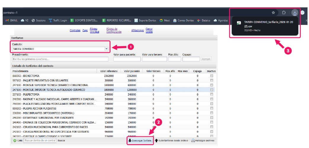 Lo primero es ingresar en el tarifario que vamos a actualizar, luego le damos clic en la parte inferior donde dice descargar tarifario esto nos descarga un archivo Excel con la información del tarifario.