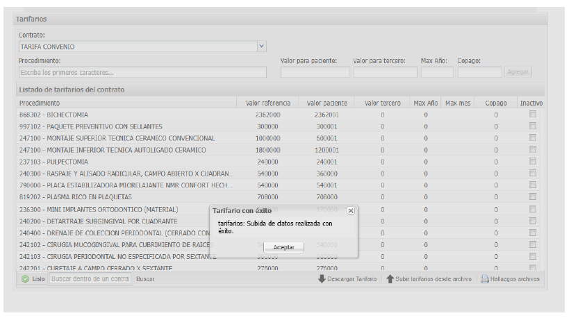Luego nos va a salir este letrero en el que nos dice que fue exitoso, lo cual significa que se actualizo de manera correcta el tarifario.