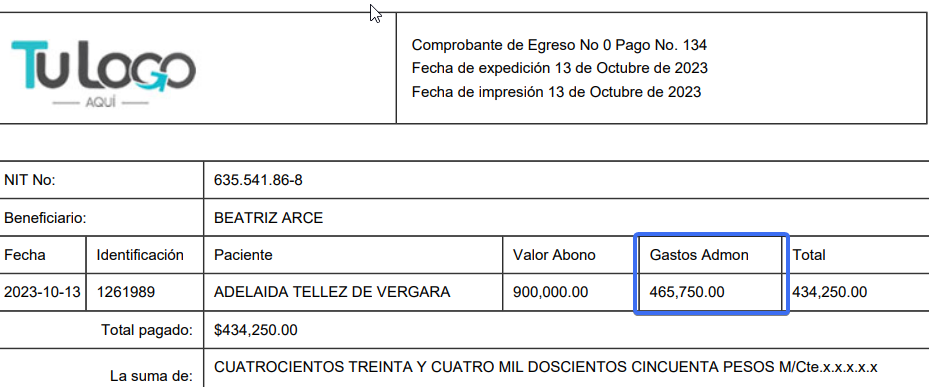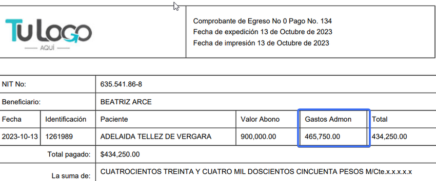 Esta opción permite revisar que en la cuenta de cobro del doctor se tenga registrado el gasto causado por laboratorios y permite editar los valores