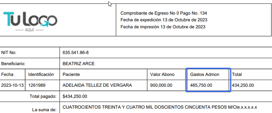 La información se vera reflejanda en el comprobante de pago al doctor
