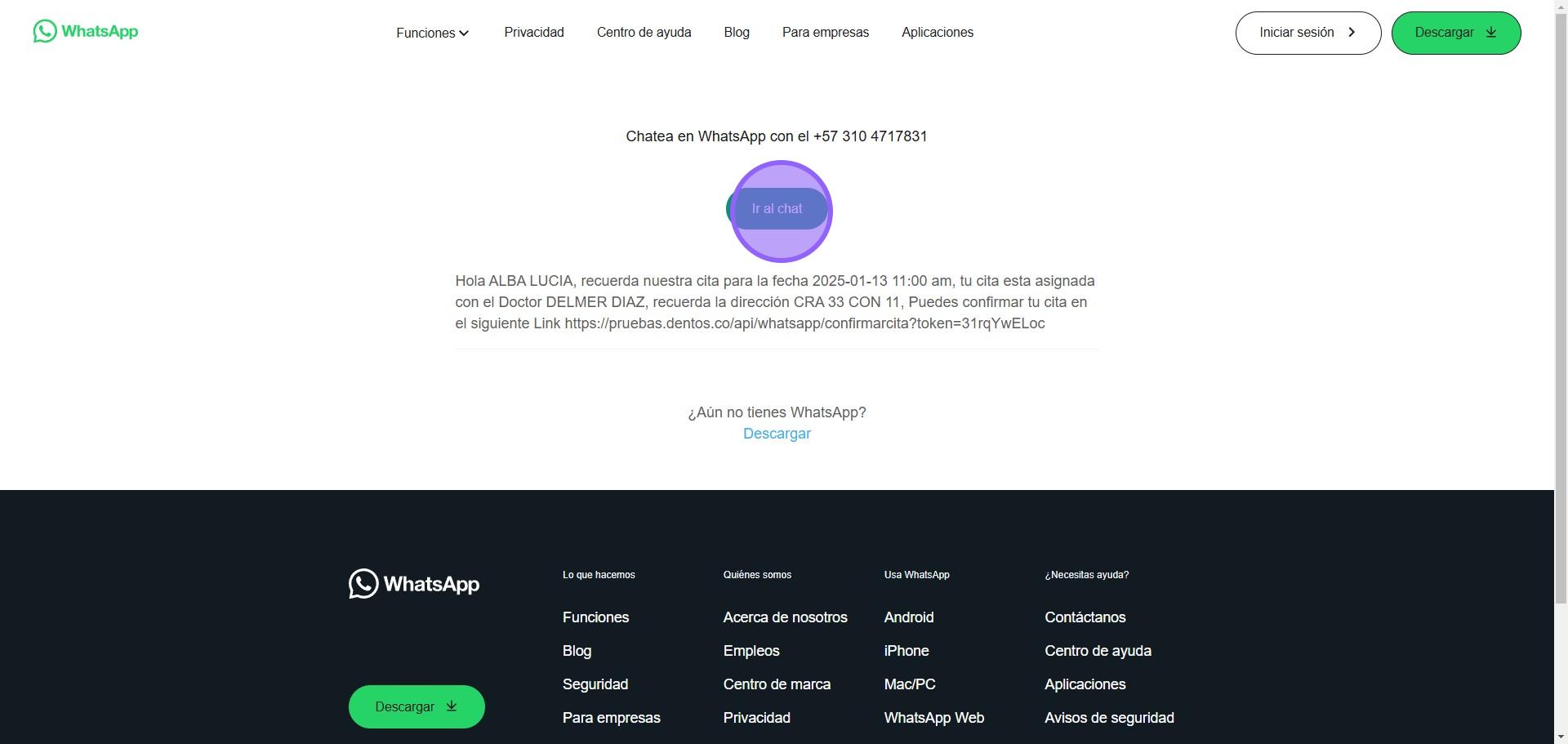 Damos Clic en ir al Chat para que te busque el contacto del paciente y enviarle, la plantilla al paciente.