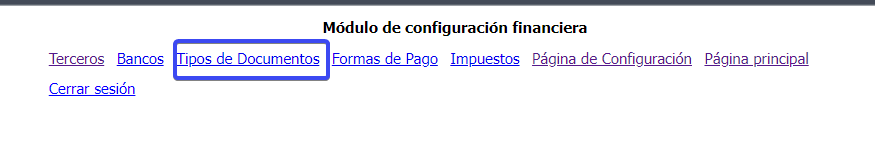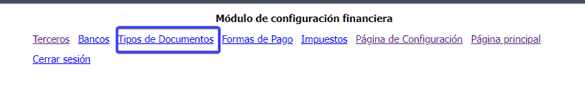 En el menú principal damos clic en el módulo de administración / configuración financiera