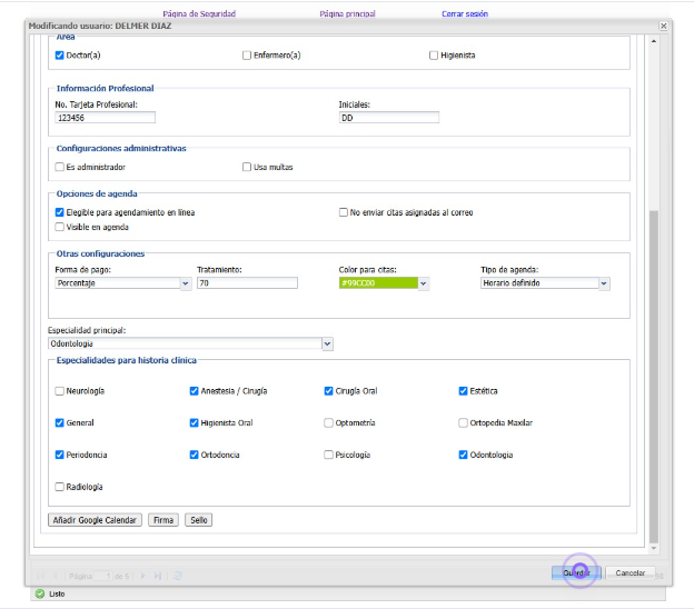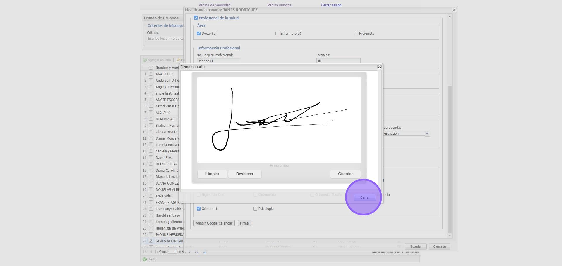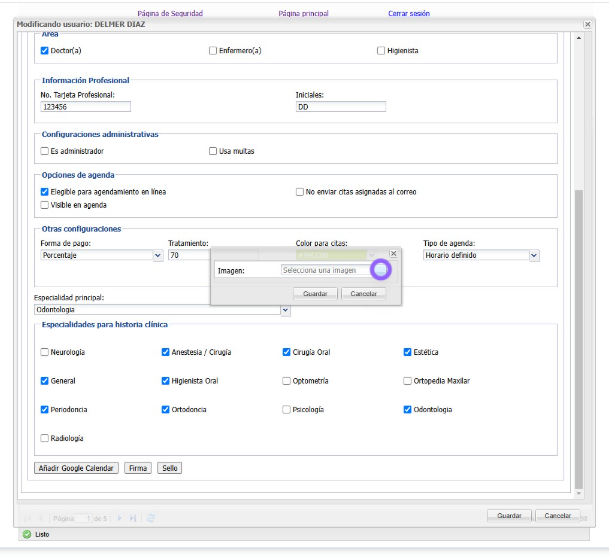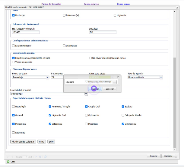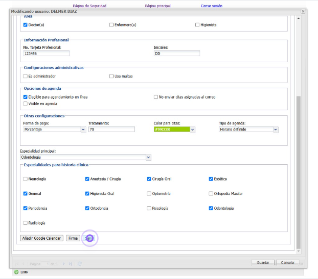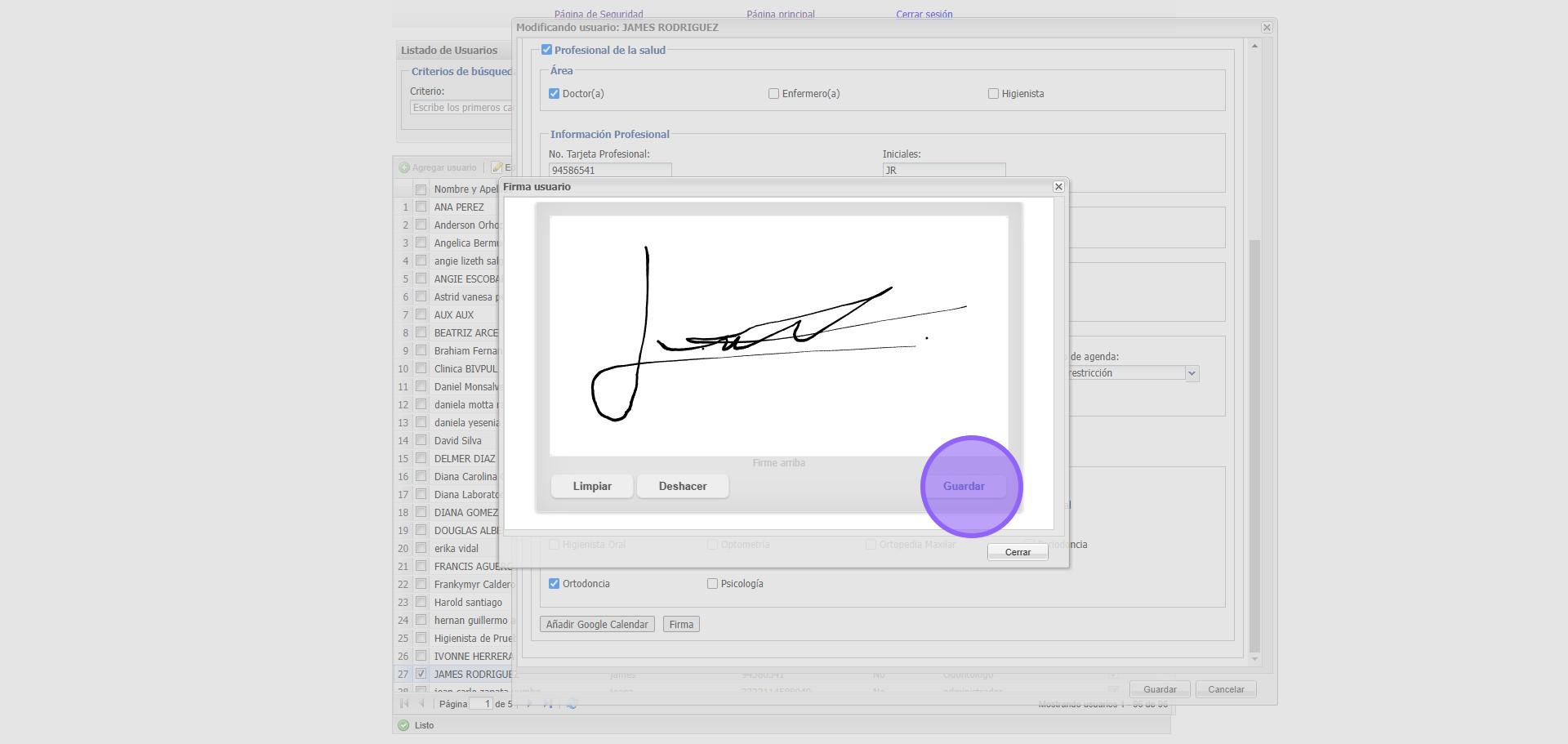 7. En este espacio agregamos la firma del Doctor y damos clic en "Guardar"