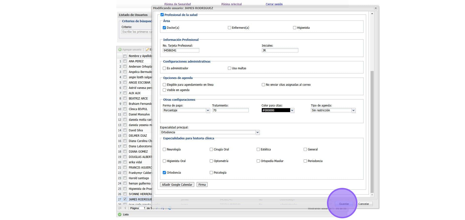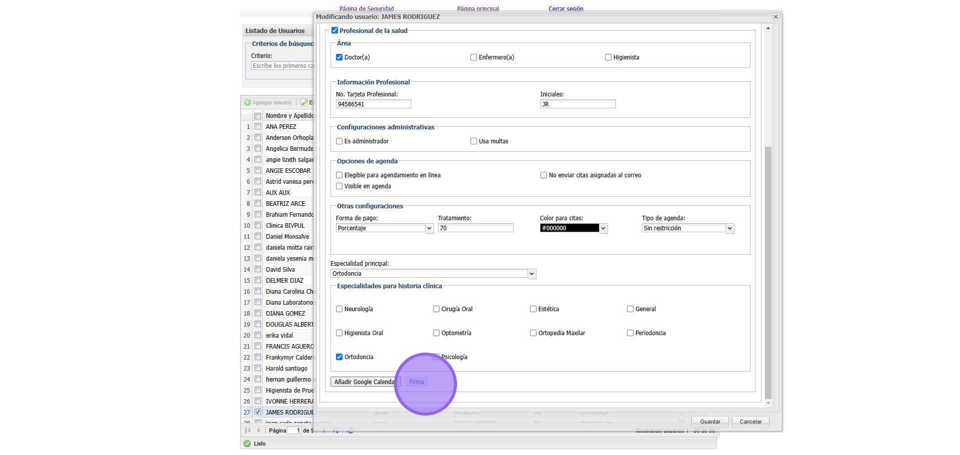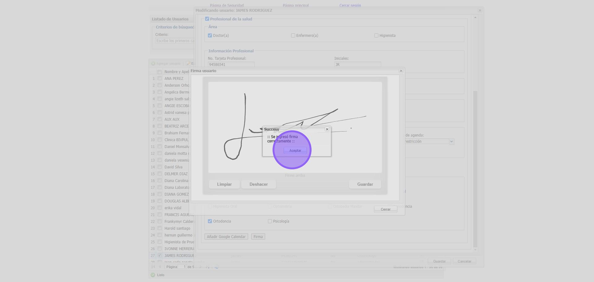 7. En este espacio agregamos la firma del Doctor y damos clic en "Guardar"