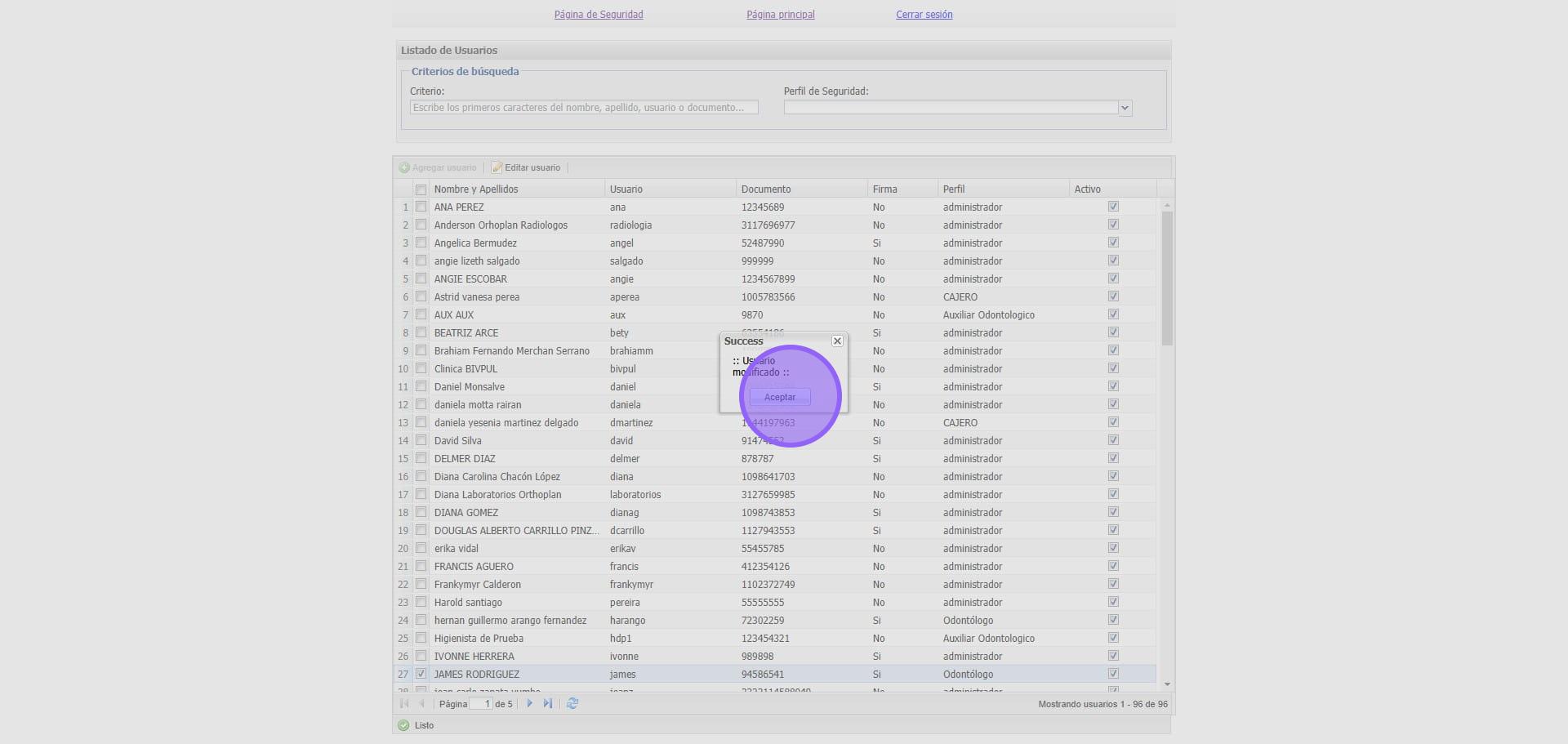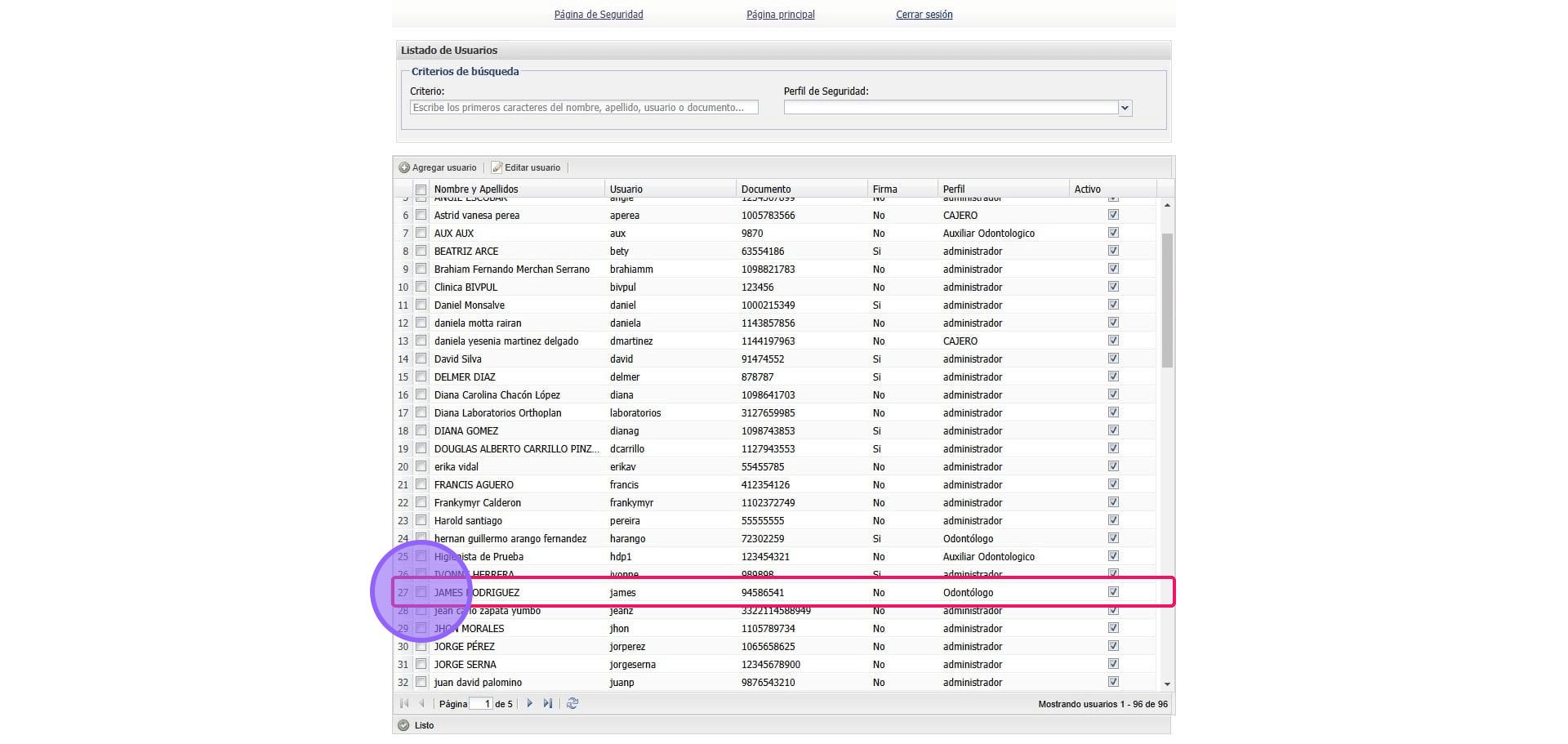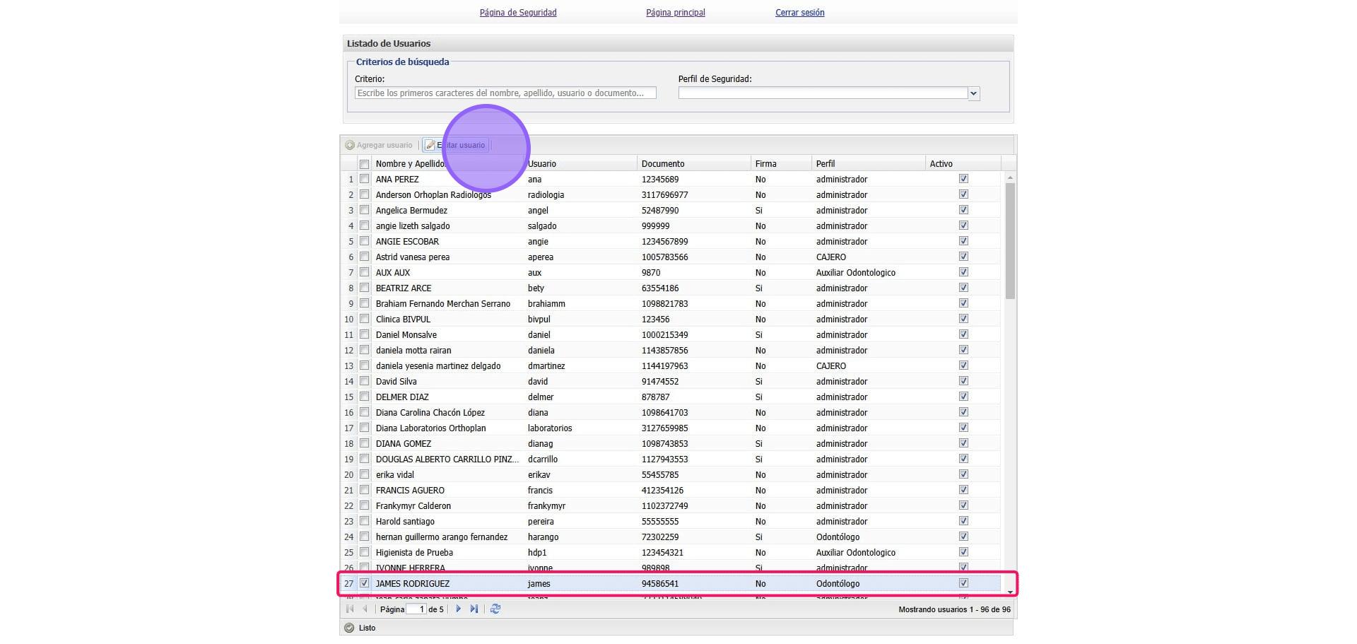 4. Debemos buscar y seleccionar el Usuario que vamos a modificar