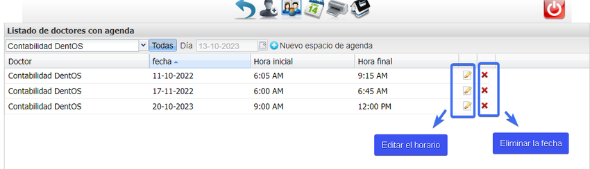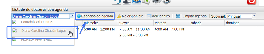 Seleciona al doctor que necesitas programar y das clic en el botón : ESPACIO DE AGENDA