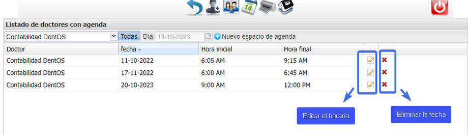 Las fechas programadas quedaran listadas en y las puede EDITAR o ELIMINAR si es mecesario