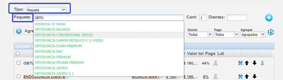Puedes optimizar la vista del plan de tratamiento, agrupando los procedimientos por PAQUETES desde el filtro