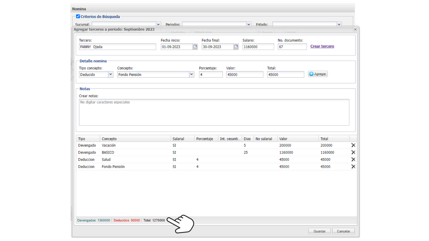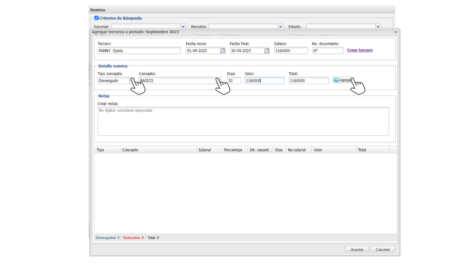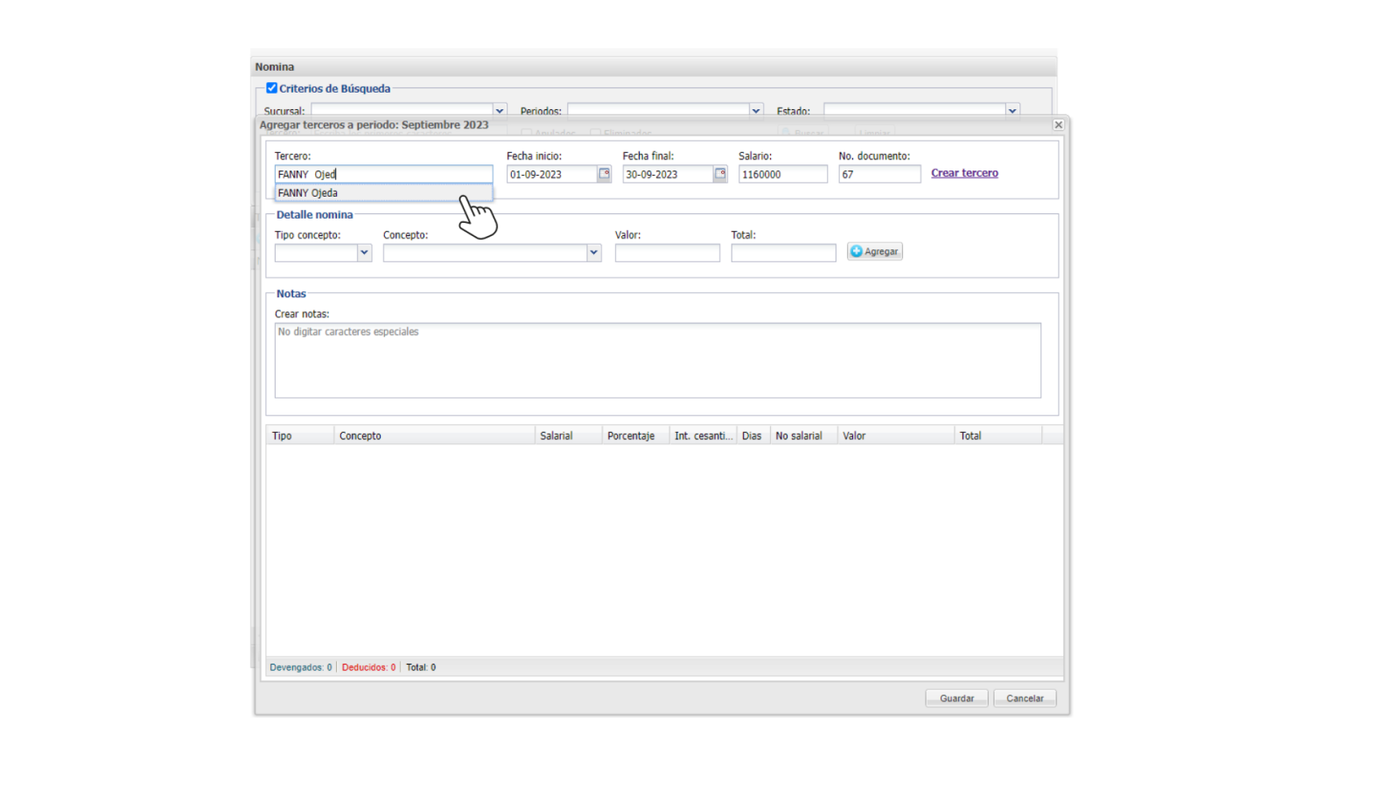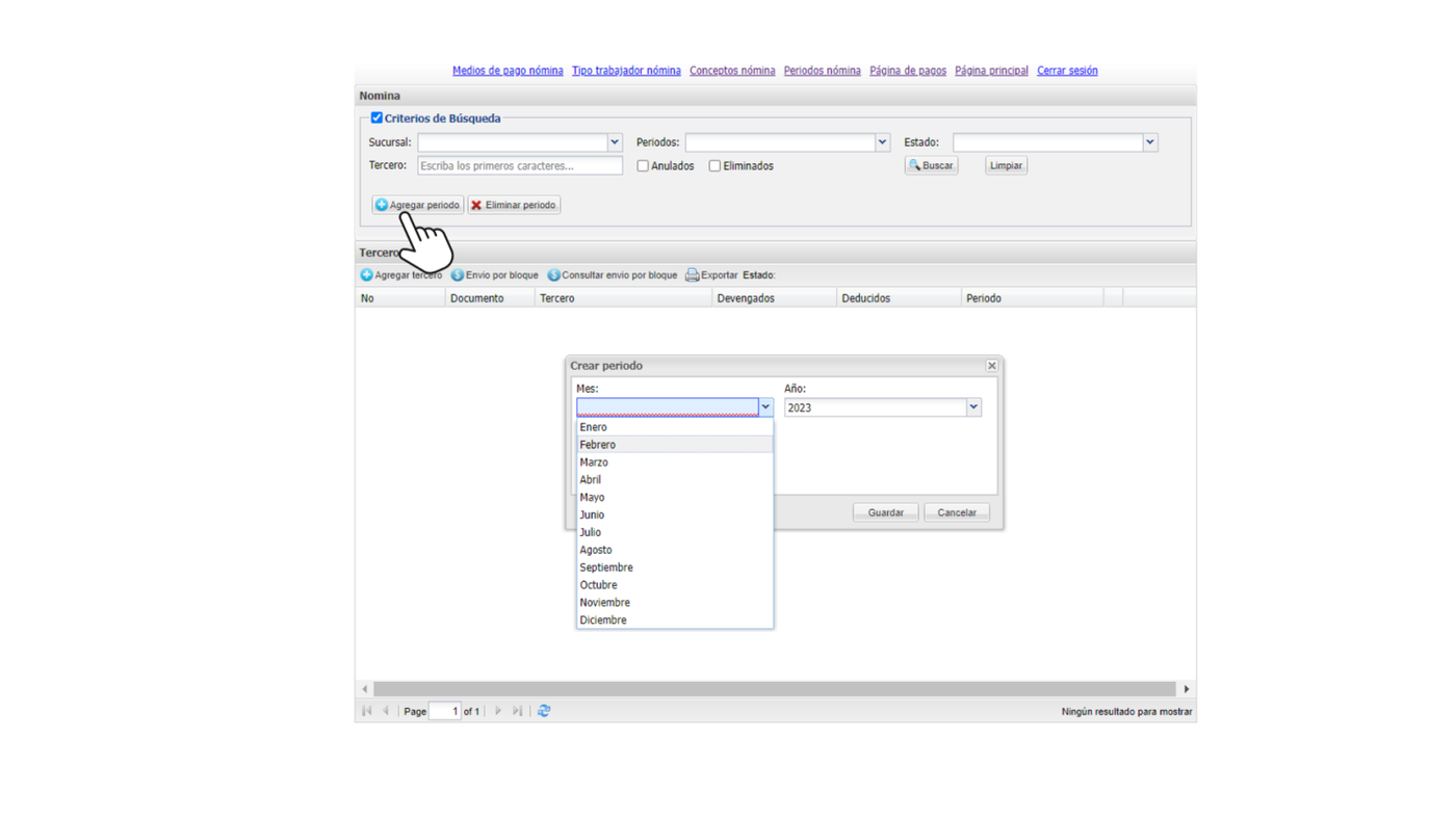 Haces clic en agregar tercero y seleccionas el periodo que deseas liquidar.