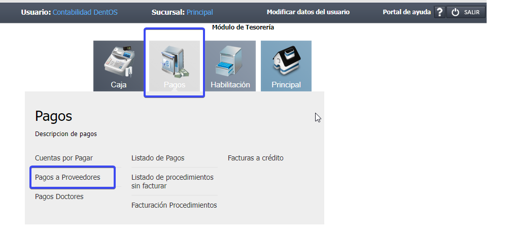 En la página principal, vamos a ingresar al módulo de pagos (icono de los billetes)/pago a proveedores
