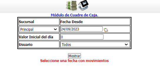 Selecciona el icono de caja y seleccionamos la opción cuadre de caja.