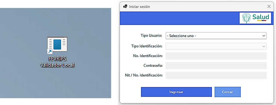 Abrimos la aplicación del validador y debemos ingresar nuestras credenciales previamente ya debemos estar registrados en Sispro.