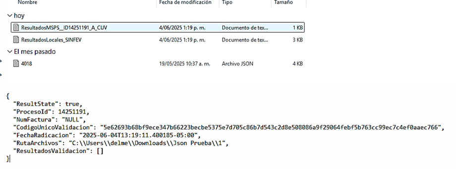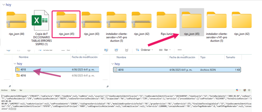 4. Al descomprimir la carpeta se nos crea una nueva con el mismo nombre, la cual contiene subcarpetas con el número de Factura asignado en el sistema, y dentro de la cual contiene el archivo Json el cual se puede abrir en bloque de notas, para los clientes con facturación electrónica también contiene el archivo XML.