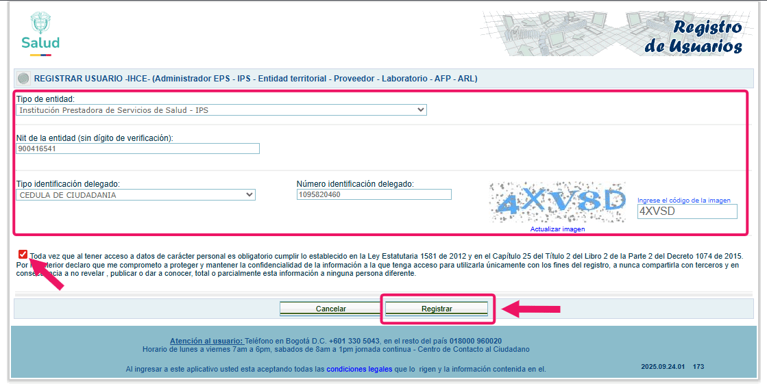 Nota: Si ya tienes un usuario en otras aplicaciones de SISPRO , no necesitas registrarte de nuevo; puedes usar las mismas credenciales.