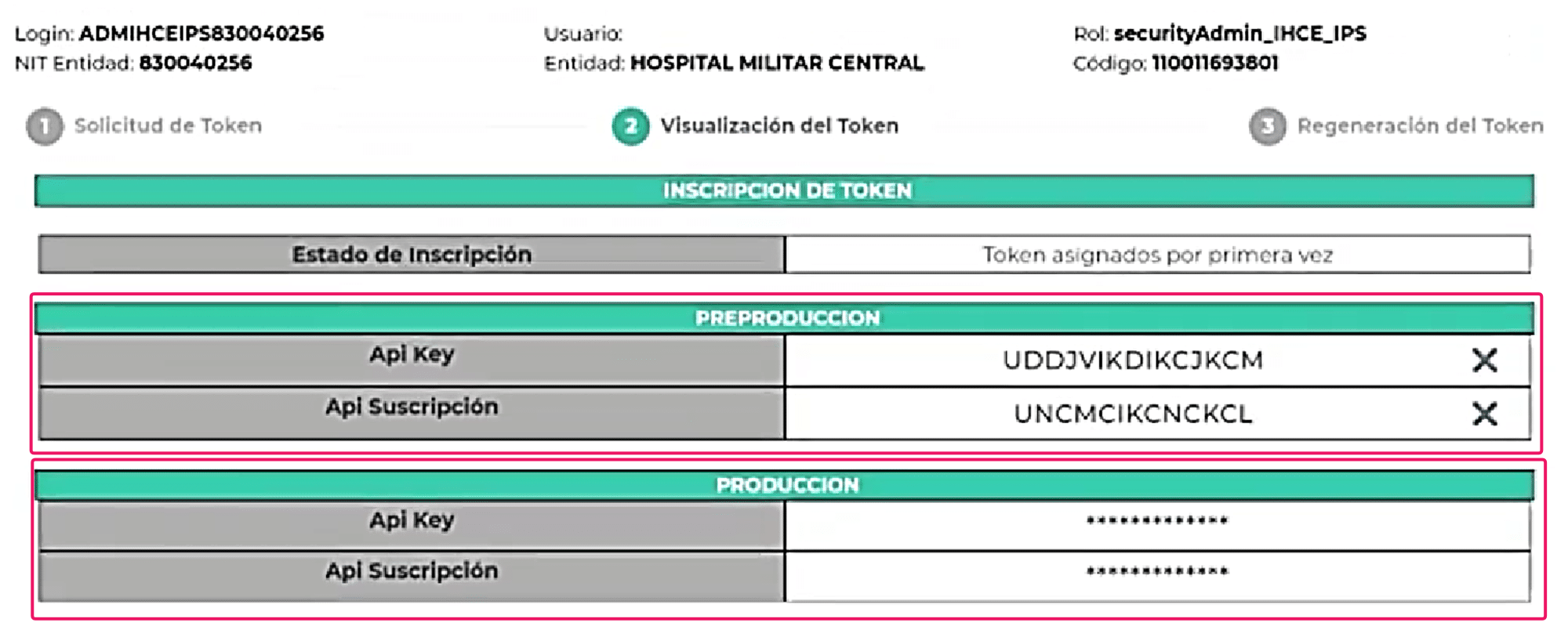 El delegado será el único encargado de solicitar y administrar las llaves de acceso (credenciales técnicas).