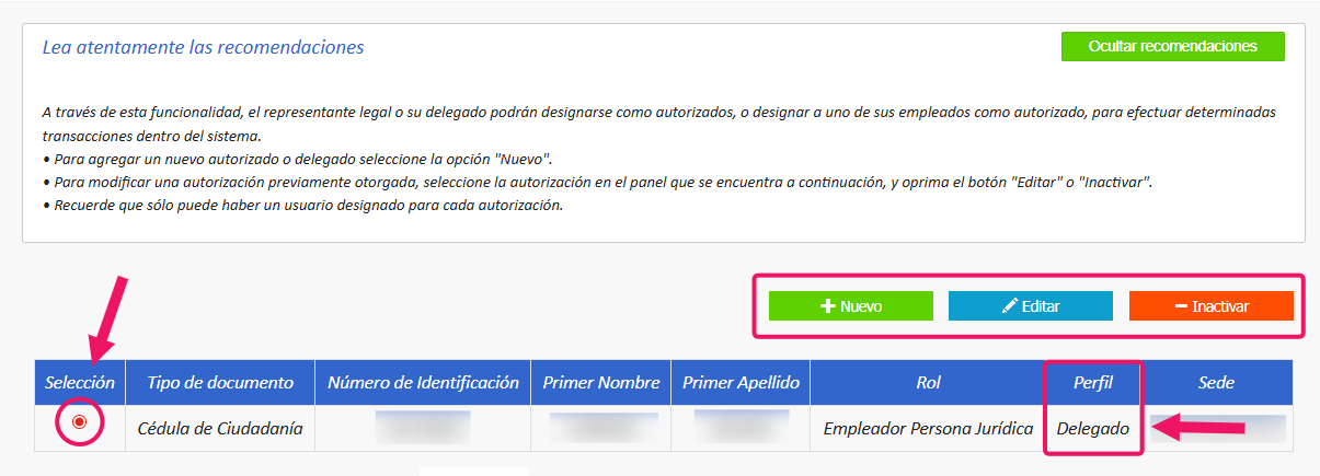 ⚠️ Importante: Ten en cuenta la columna "Perfil" 📑; esta es la que nos clasifica el Delegado 🎖️