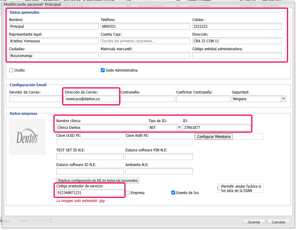 Parametrización para el envío de los Fev - Rips desde DentOS