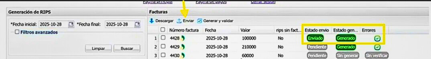 Ahora al generar los Rips se habilitara el botón de Enviar, desde donde podemos enviar nuestros Rips directamente al ministerio sin necesidad de tener el validador