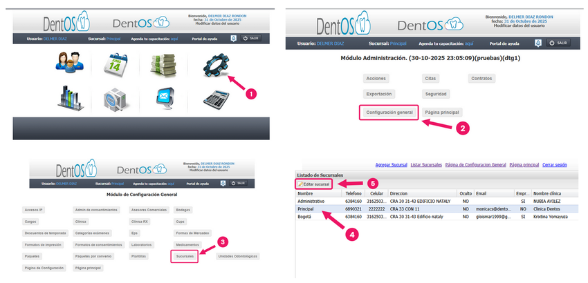 Debemos seleccionar la sucursal y luego hacer clic en Editar Sucursal.