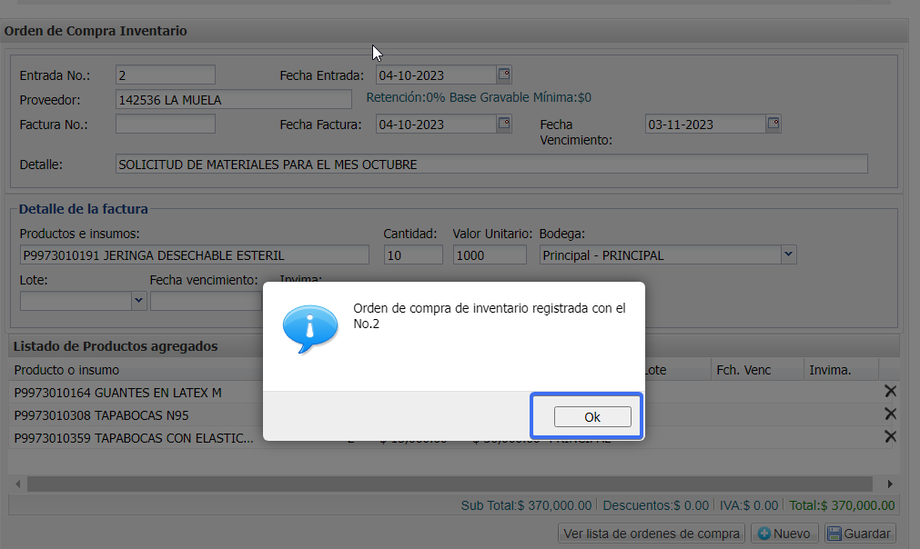 Listo, ya esta creada tu orden de compra