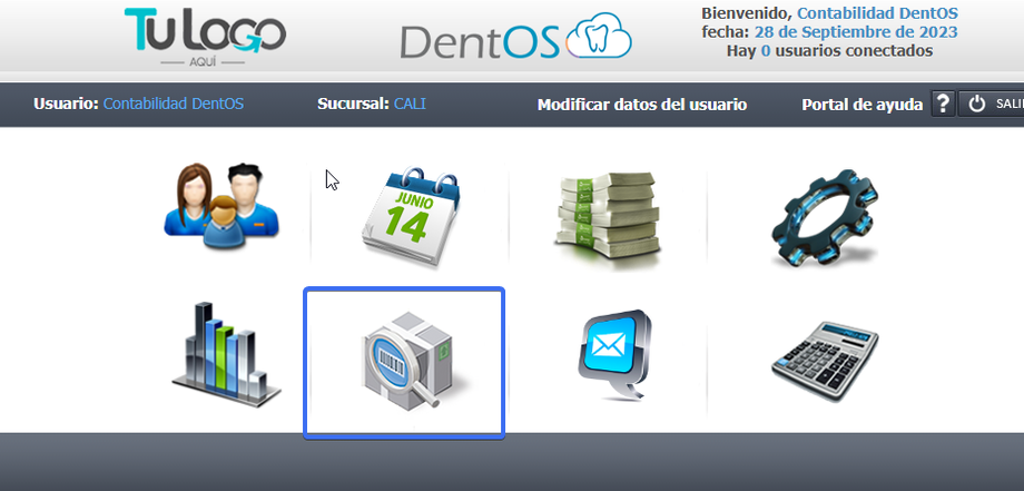 Ingresa al MENU PRINCIPAL y selecciona el MODULO INVENTARIOS icolo de la caja con la lupa
