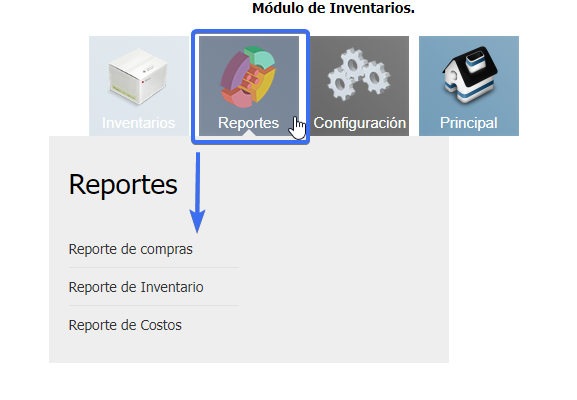 Seleciona la opción REPORTES , luego selecciona el reporte que necesites: compras , inventario , costos
