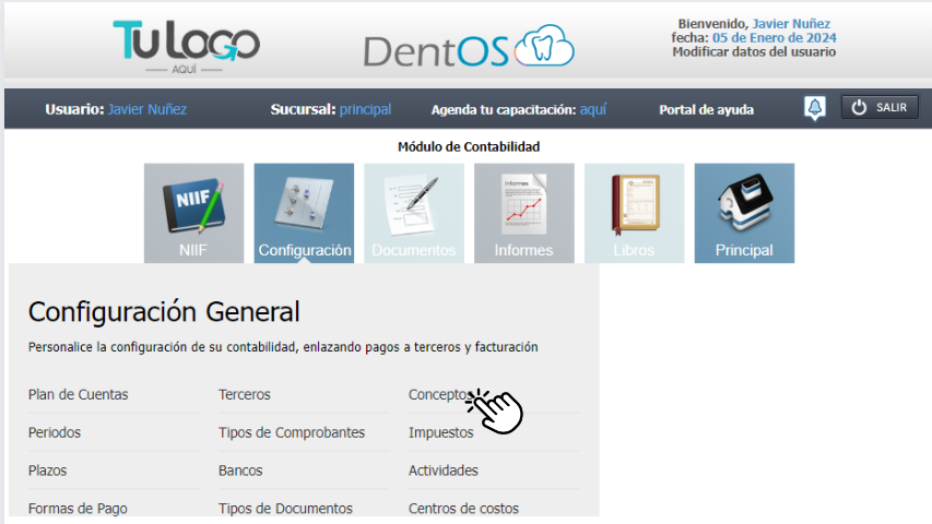 Para configurar los conceptos debes hacer la siguiente ruta:
