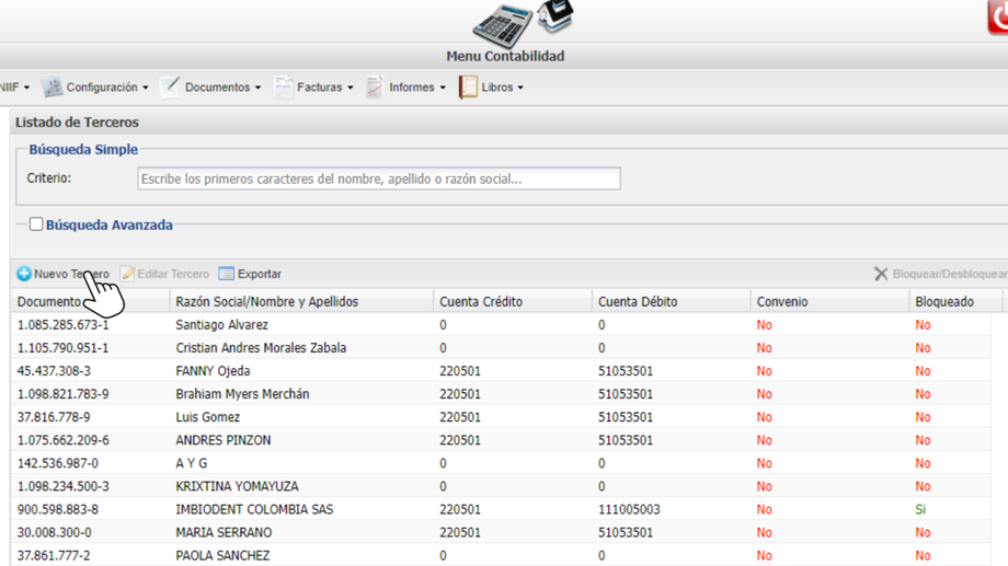 Debes hacer la siguiente ruta Módulo contable- Configuración- Terceros