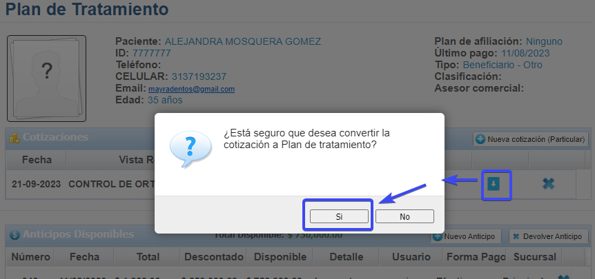SI ya tienes creado una cotización o presupuesto lo unico que debes hacer es CONVERTIR a plan de tratamiento