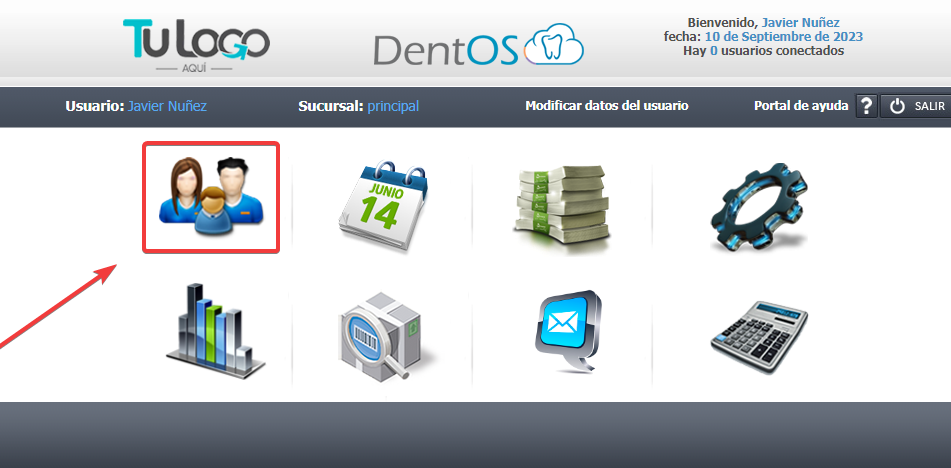 Para adicionar un paciente vamos al MENU PRINCIPAL al primer modulo de PACIENTES (el icono de la familia).