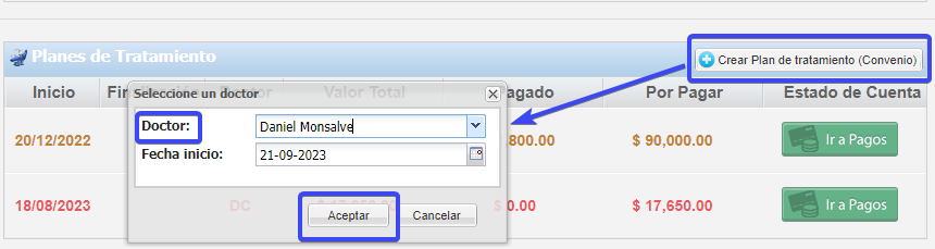 Aplica para crear plan de tratamiento directo sin crear cotización y/o para crear plan de tratamiento por convenios que lleva unos pasos especificos (puedes ver el tutorial plan de tratamiento por convenios o contratos )