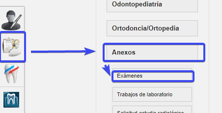 Selecciona la opción de ANEXOS (la última de los iconos) y damos clic en el último icono EXAMENES