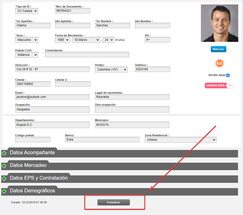 MODIFICAMOS los campos dando clic izquierdo en cada uno y por ultimo seleccionamos en la parte inferior el botón "ACTUALIZAR".